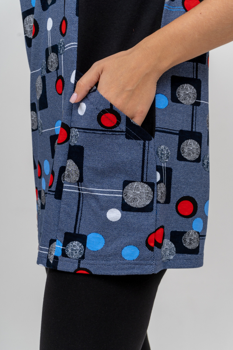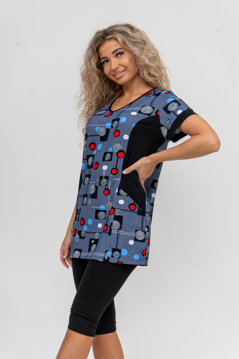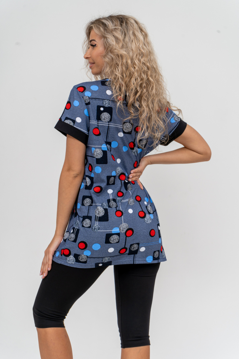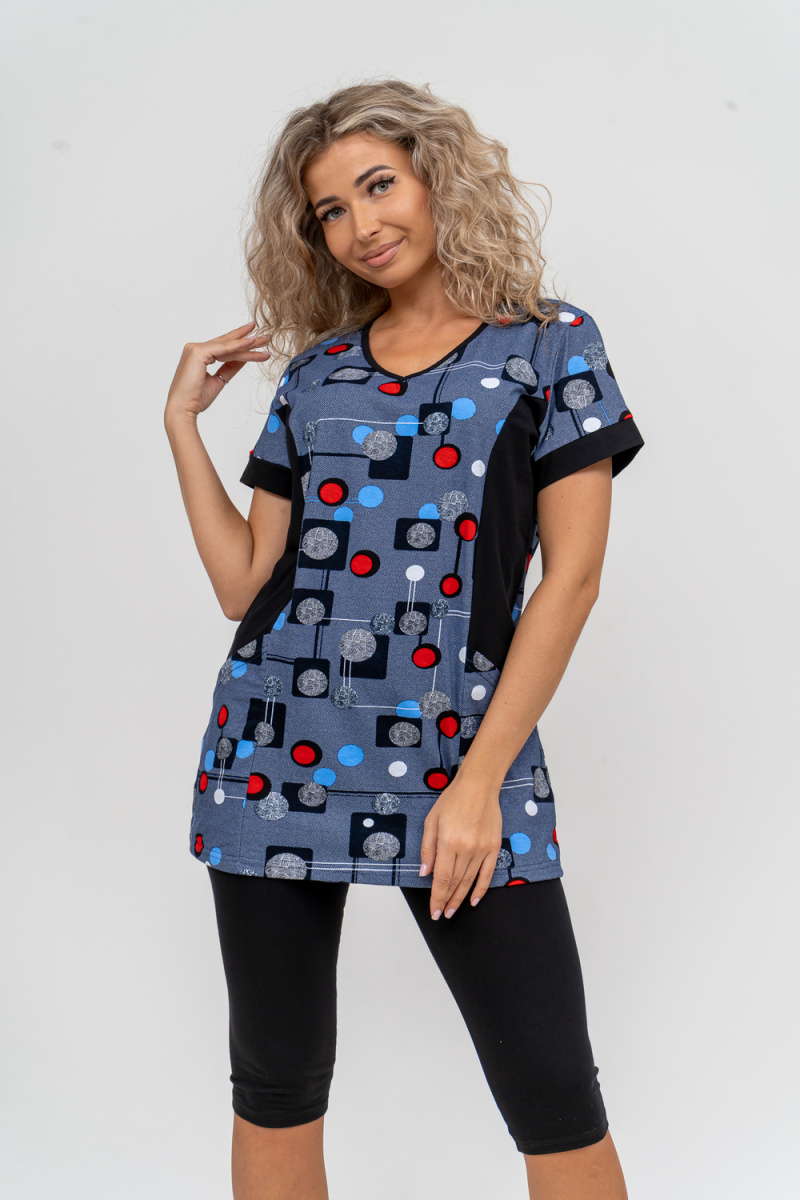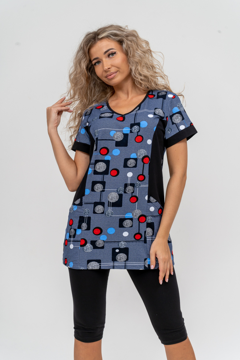 Женский костюм полуприлегающего силуэта состоит из туники и бриджей. 100% дышащий хлопок туники и эластичные бриджи несут в себе удобство при носке, гигроскопичность и износостойкость. V-образный вырез горловины придаёт изделию женственный вид. Для удобства туника имеет вместительные накладные карманы и втачные рукава с манжетами. Рельефы на полочке изделия создают идеальную посадку и безупречный внешний вид. Бриджи на резинке с высокой посадкой. В костюме такого плана Вы будете чувствовать себя комфортно как дома, так и на любимой даче. Эта двойка идеально подойдет для летнего отдыха на даче, на море или просто для девушек, которые хотят чувствовать себя уютно и комфортно дома. Летний женский костюм подходит для поездок и путешествий, загородного отдыха на природе, а также для получения лечения в больнице или санатории. Повседневное хлопковое изделие с бриджами - отличная идея для подарка любимой жене, маме, сестре или подруге на день рождения, 8 Марта или по любому другому приятному поводу. Рекомендация: дл