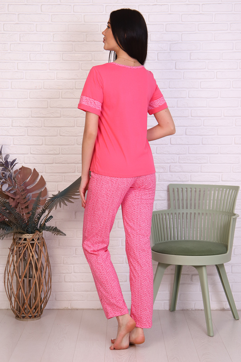 Молодежный яркий костюм из кулирки футболка + брюки. Футболка из однотонной ткани с печатью, рукава которые, горловина V-образная брюки из набивной ткани, с карманами