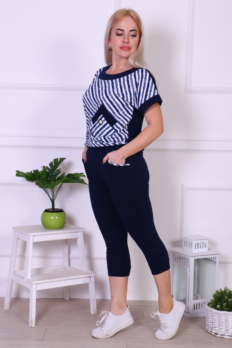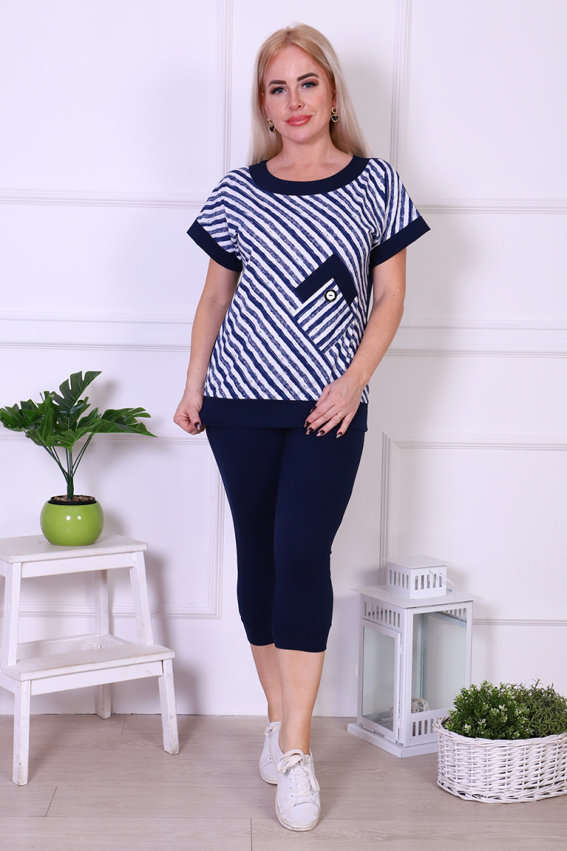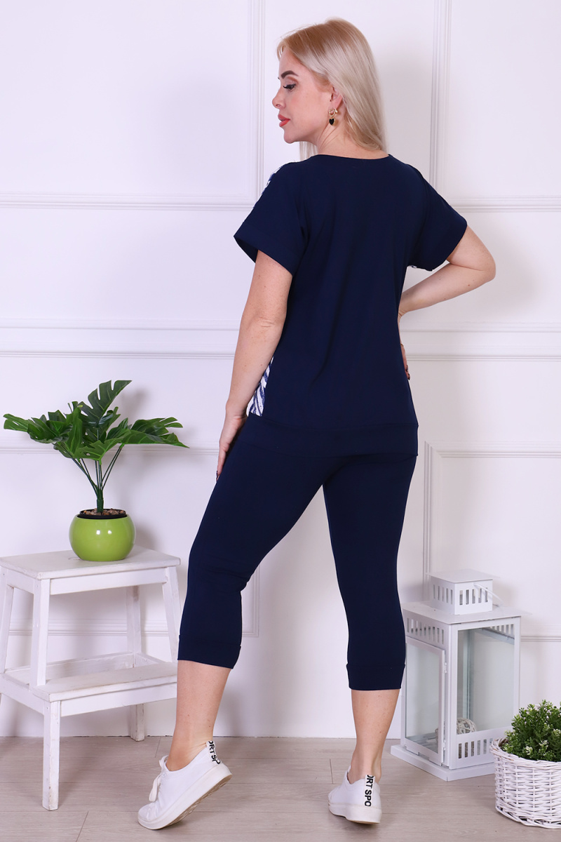 Футболка свободного покроя с декоративной отделкой, бриджи на манжетах с карманами