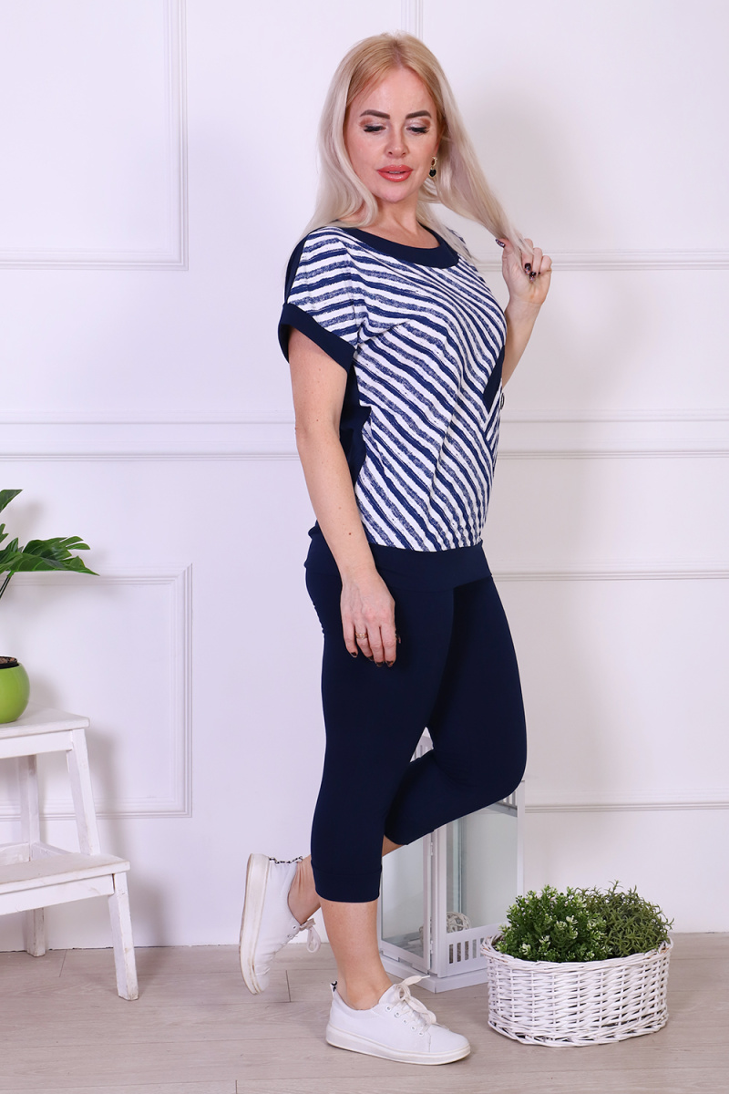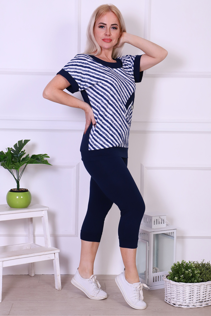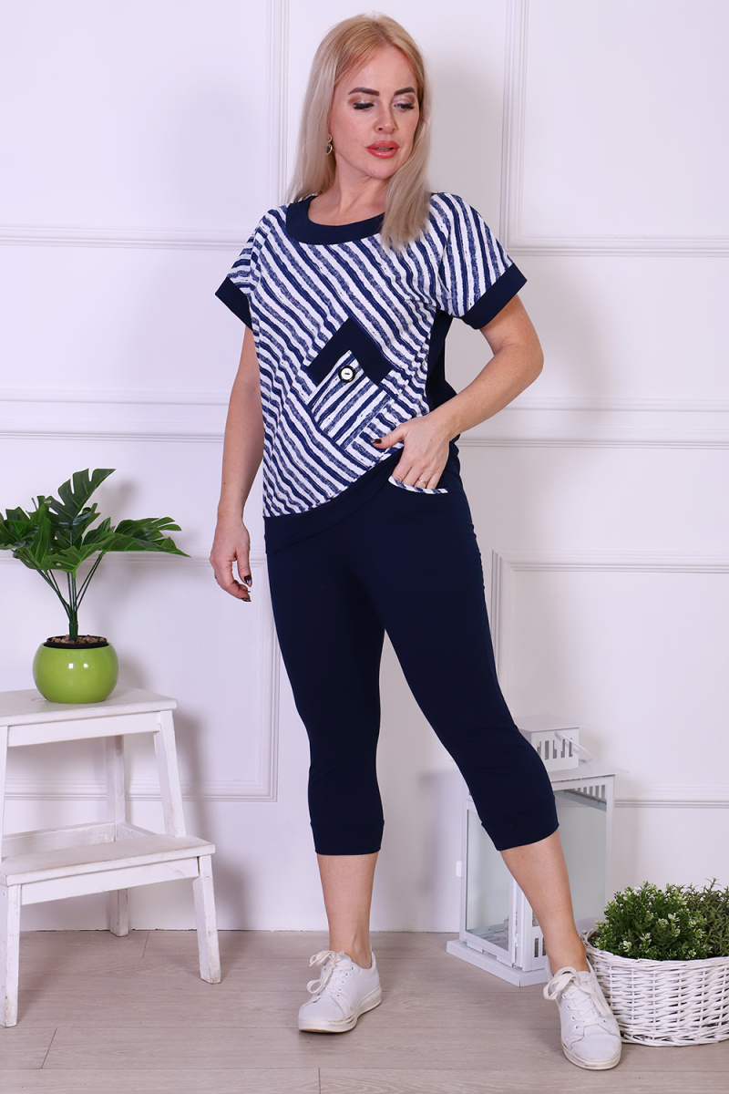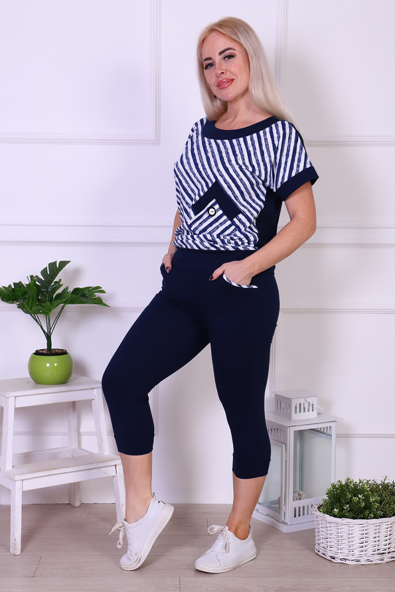 Футболка свободного покроя с декоративной отделкой, бриджи на манжетах с карманами